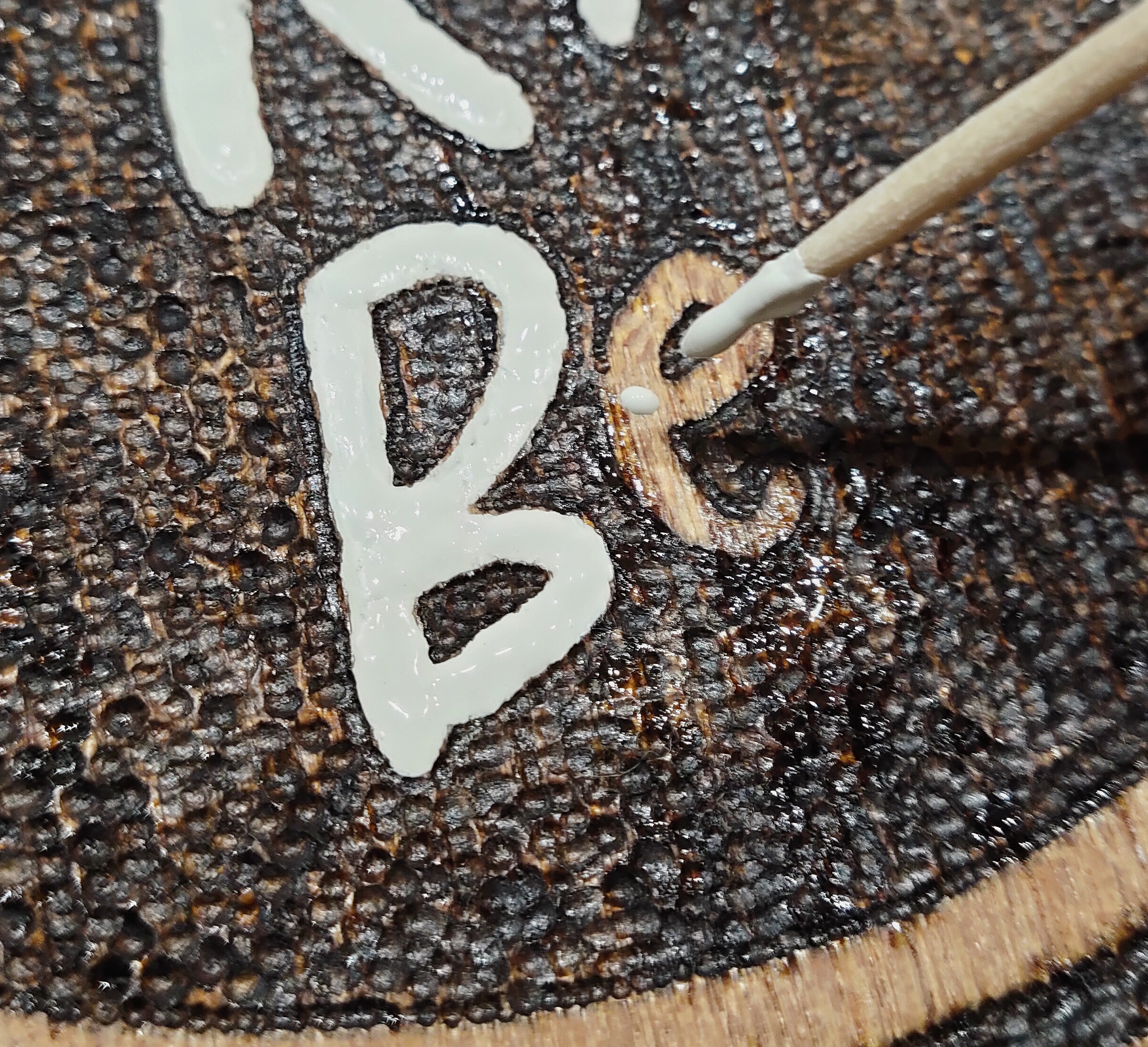 今回は名前を白のペンキで塗ってみました。細かい所はつまようじでちょんちょん。
