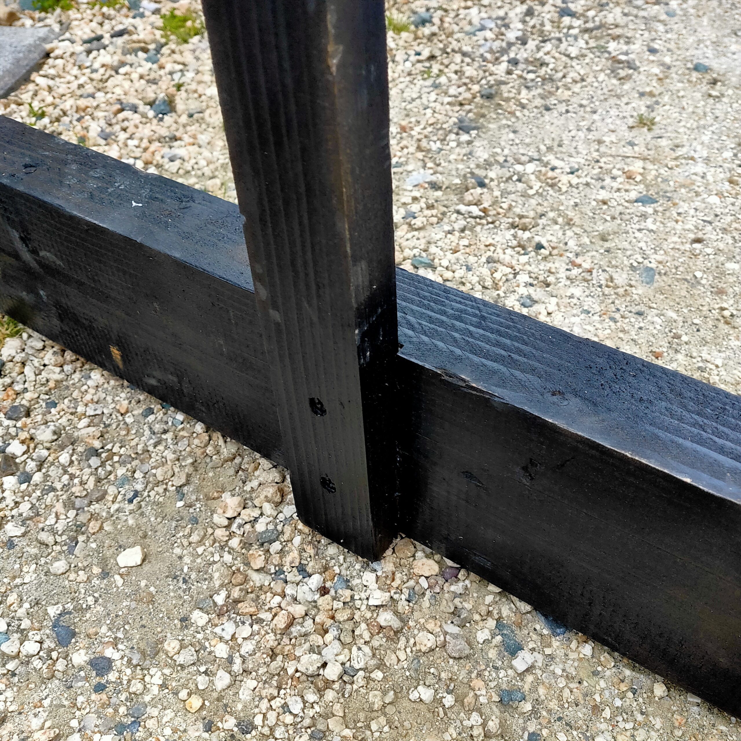 土台も太い木の方に溝を作り、フレームの足がはまるようにしました!塗装後の写真しかなくて、見づらくてすみません…
